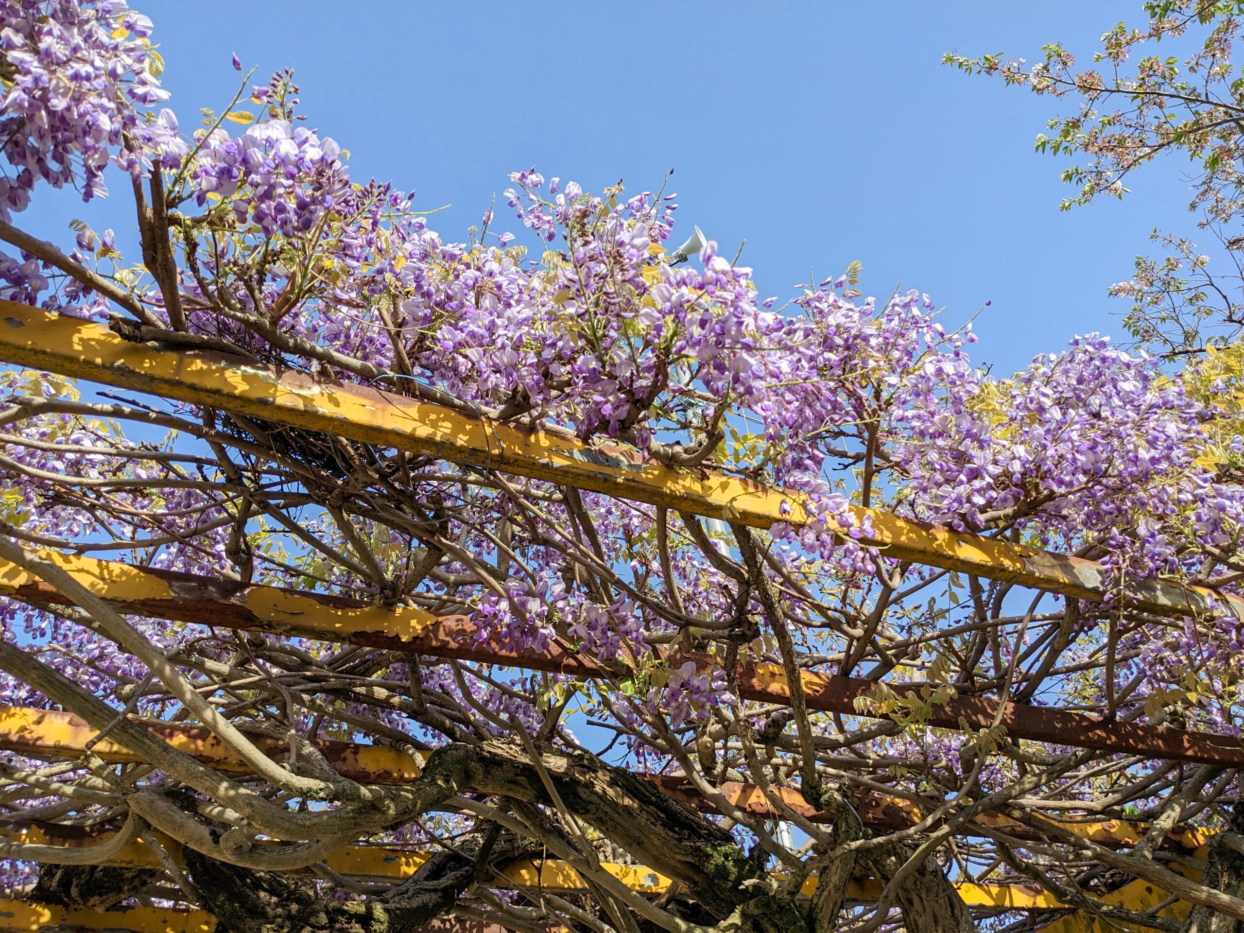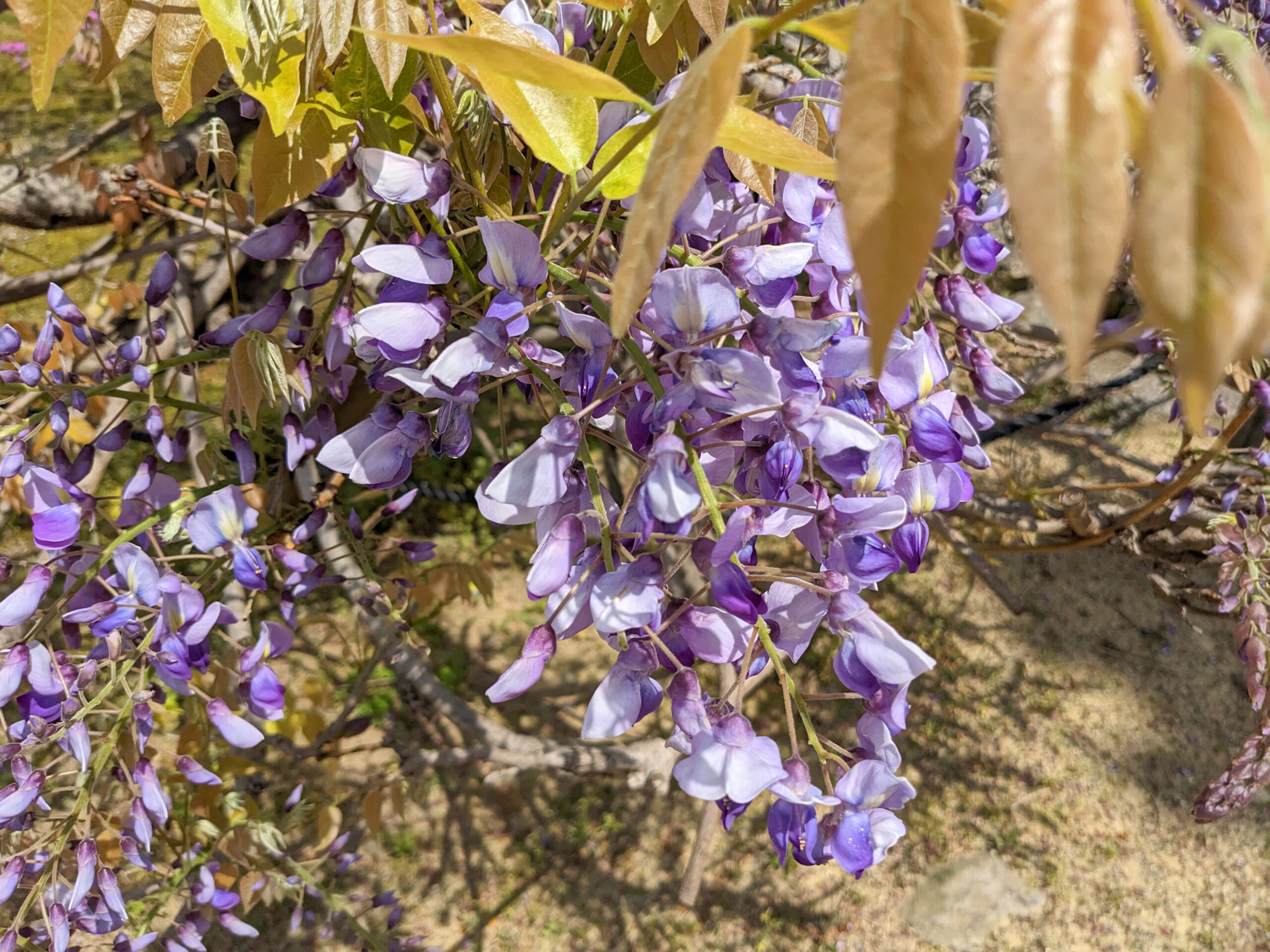 藤の花の見頃はゴールデンウィーク頃ですが、雨や風に弱いため風雨が続くと早く散ってしまうことがあります。