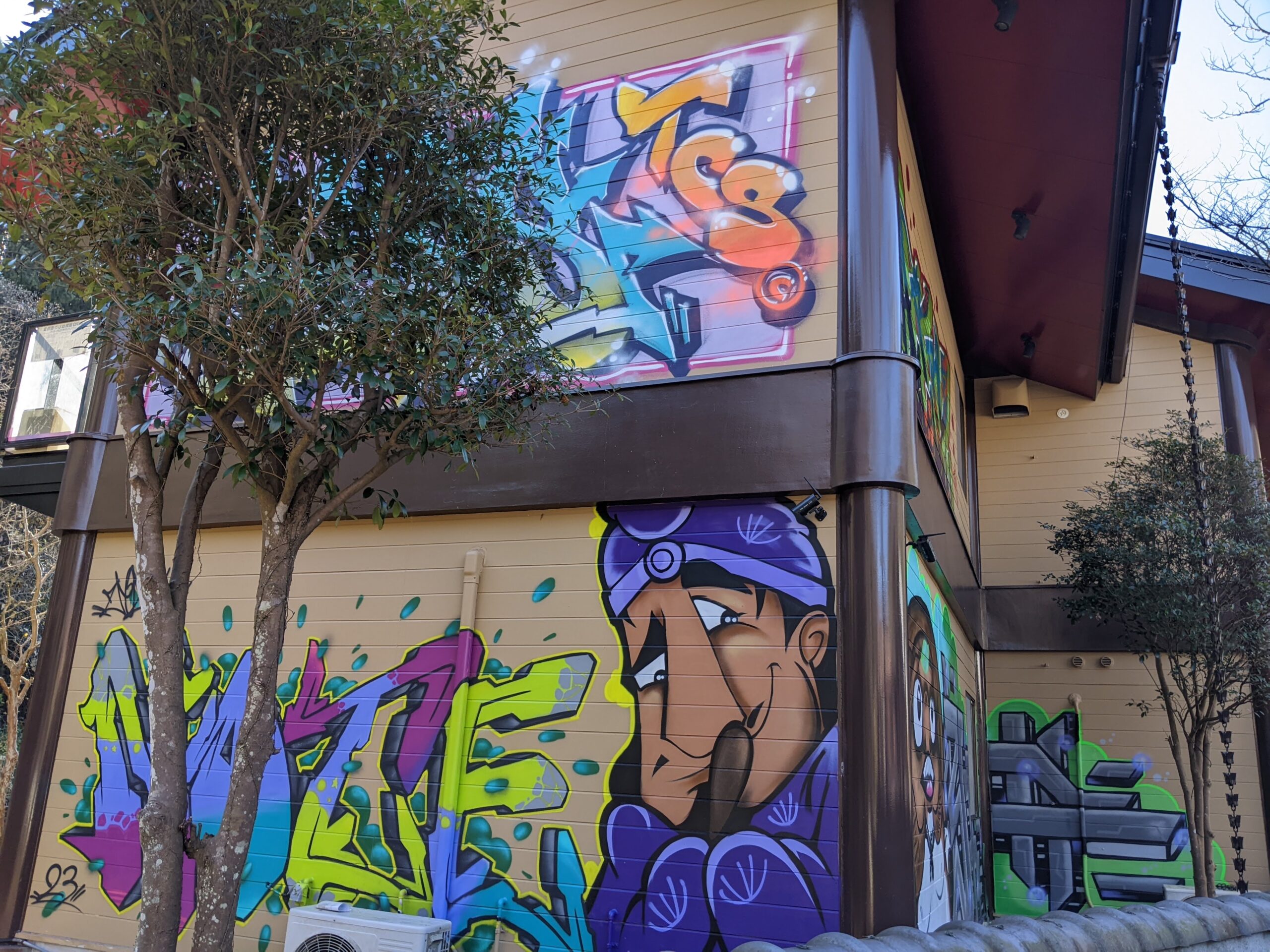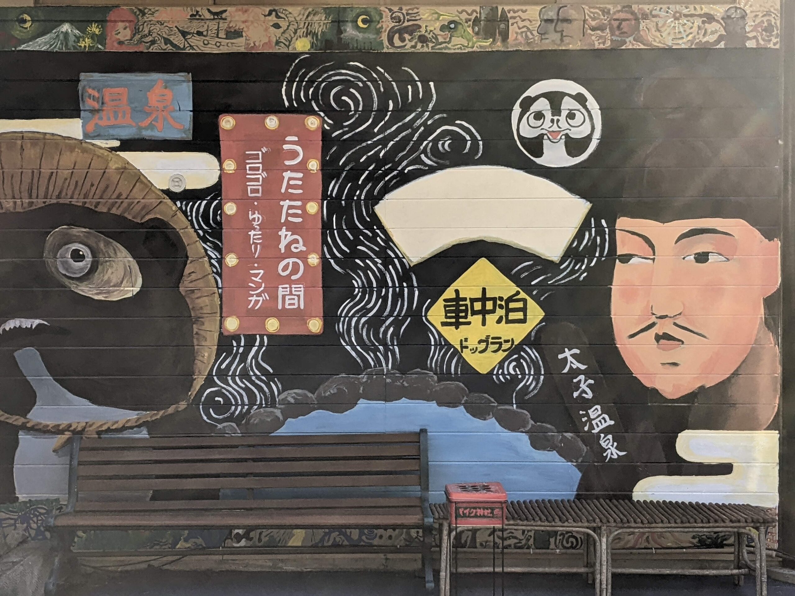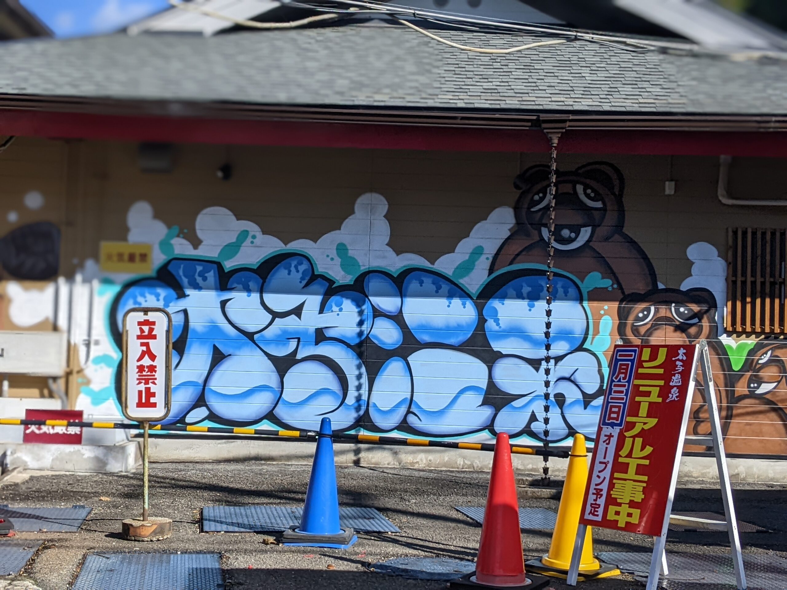 太子温泉から一歩外に出ると、色鮮やかなシャッターアートやウォールアートをお楽しみいただけます。