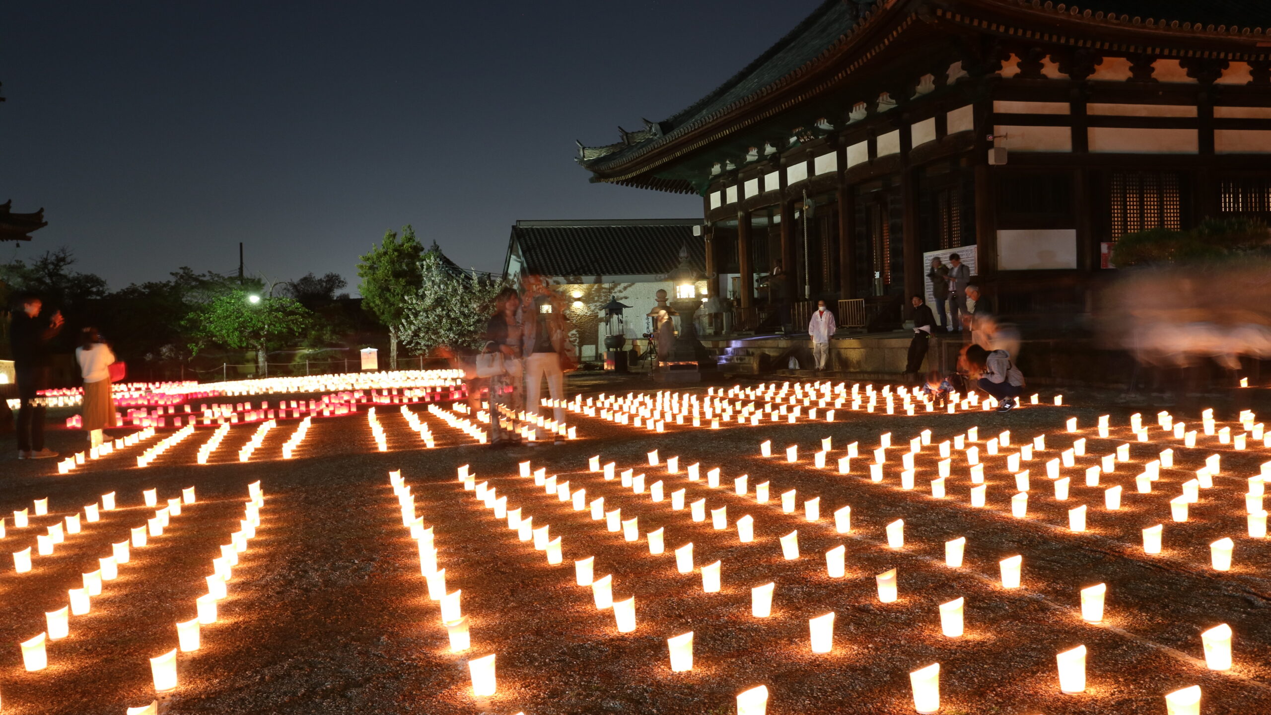 特にメイン会場である叡福寺の金堂前にはライトアップされた竹あかりが展示され、一番の見どころです。カメラのご準備をお忘れなく!