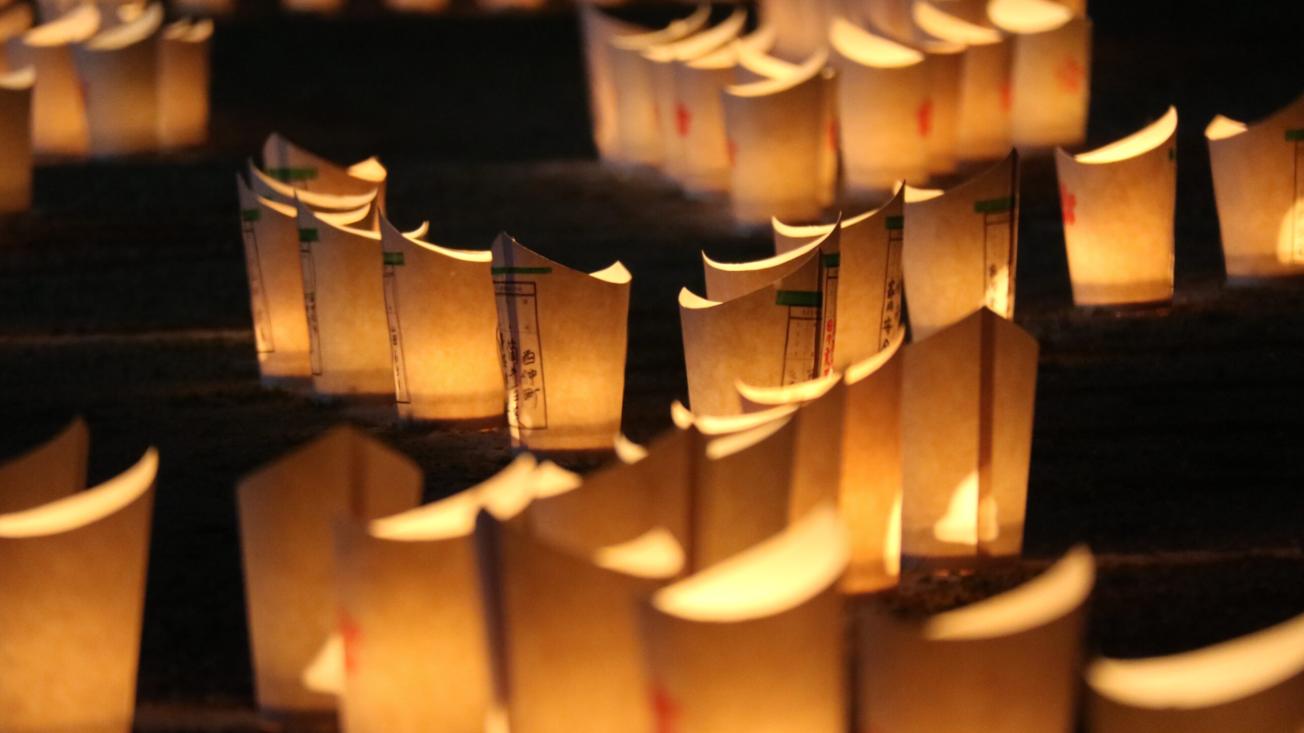 太子聖燈会とは、太子町のシンボルである「叡福寺」・「西方院」・「太子・和みの広場」にて数多くの燈花カップや竹あかりを灯し、人々の幸せを願うイベントのことです。
