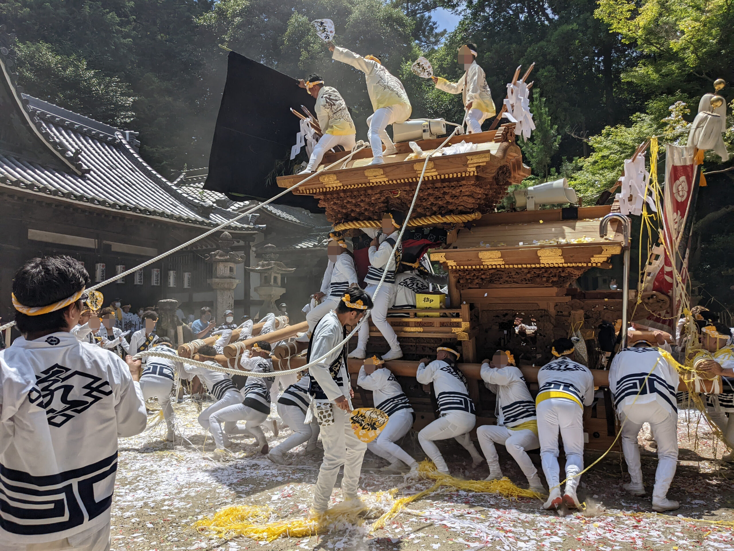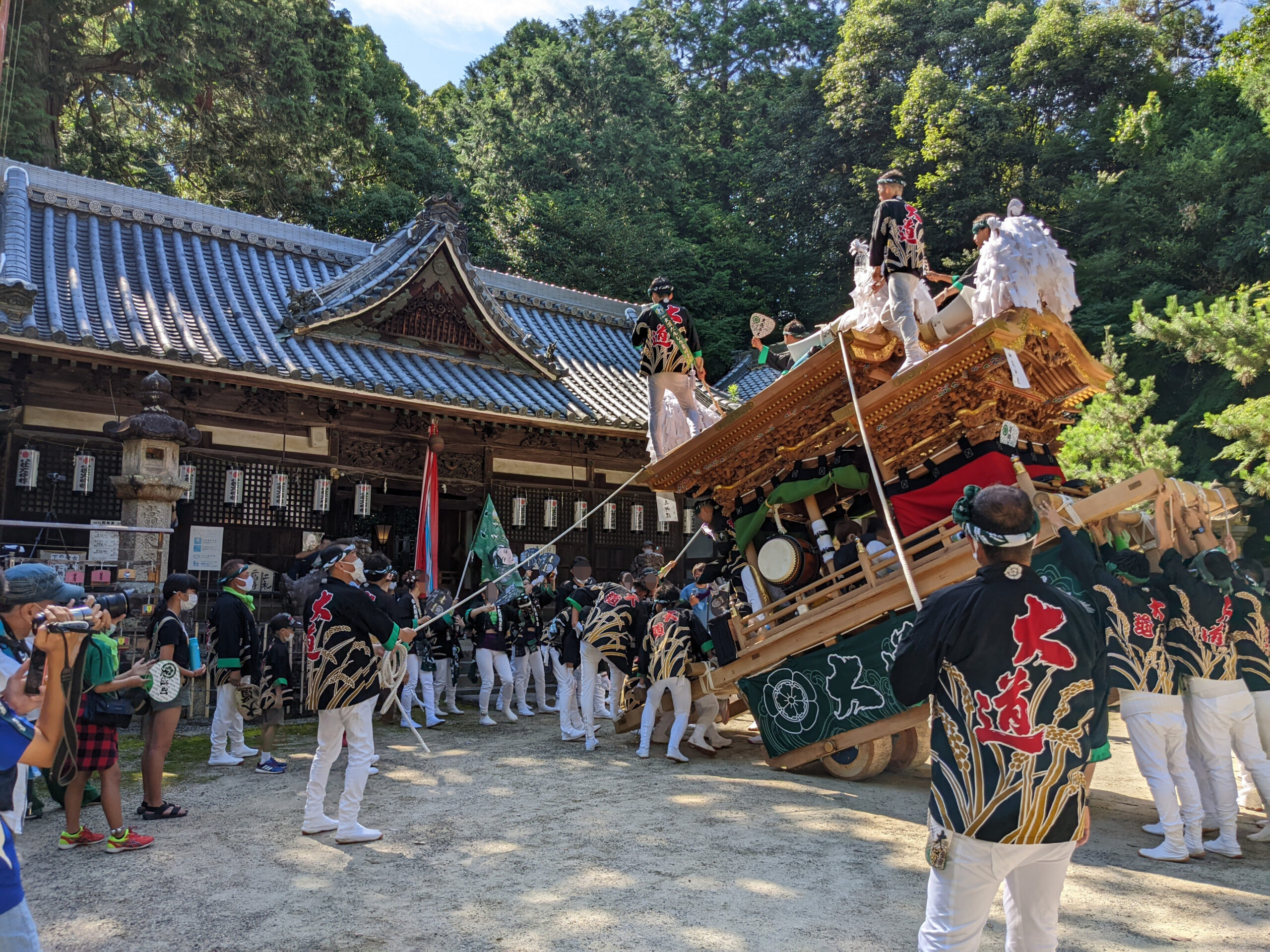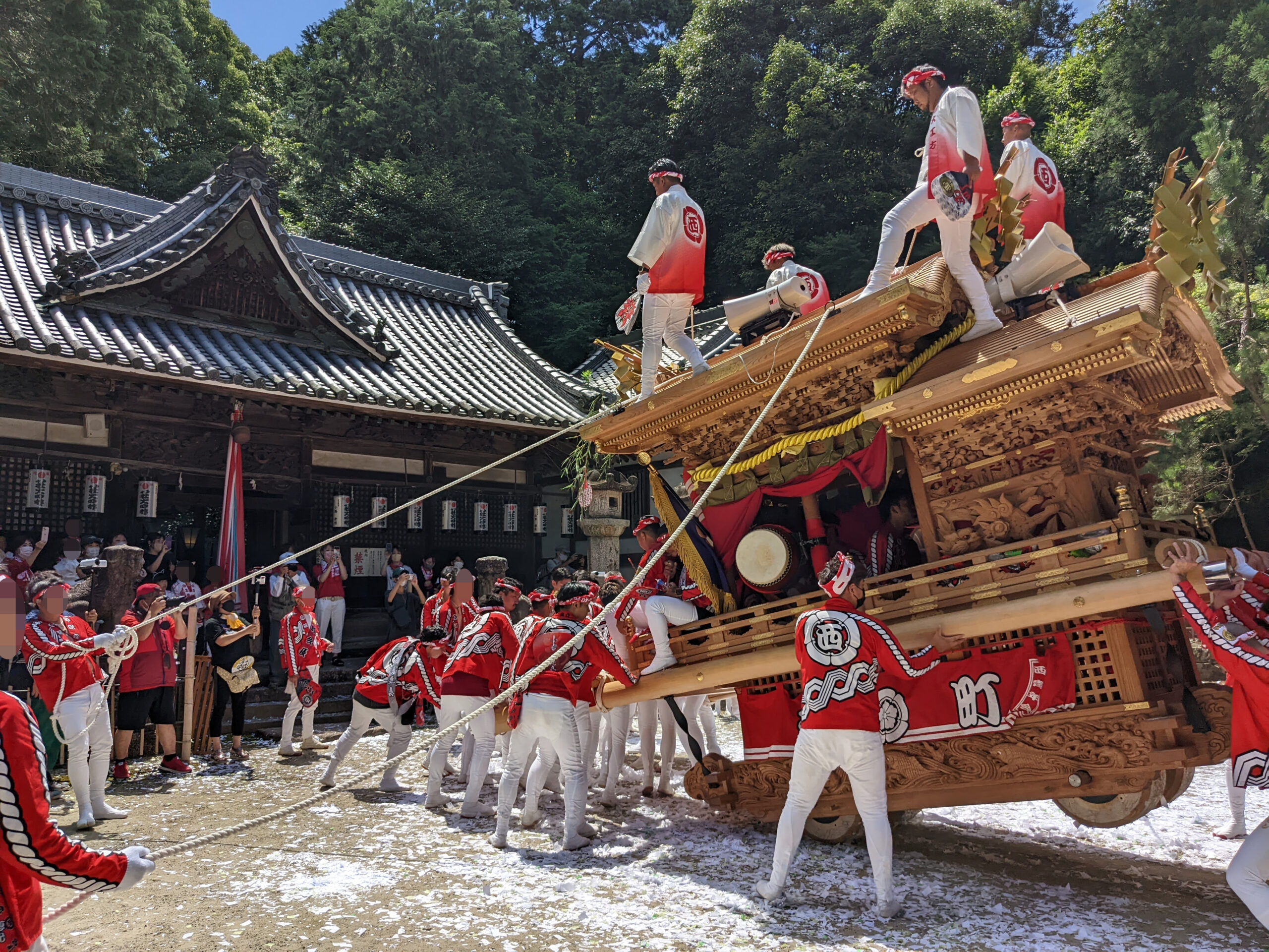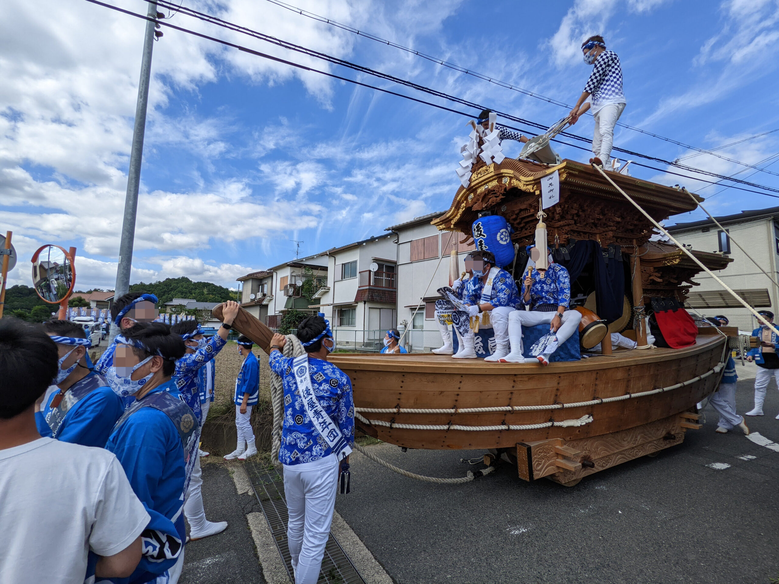 7月23日(土)と24日(日)に3年ぶりとなる科長(しなが)神社の夏祭りが行われ、太子町山田地区のだんじり曳行が復活しました。晴れ渡る青空の中、太子町内ににぎやかな鳴物の音色、威勢のいい掛け声が響き渡ります。