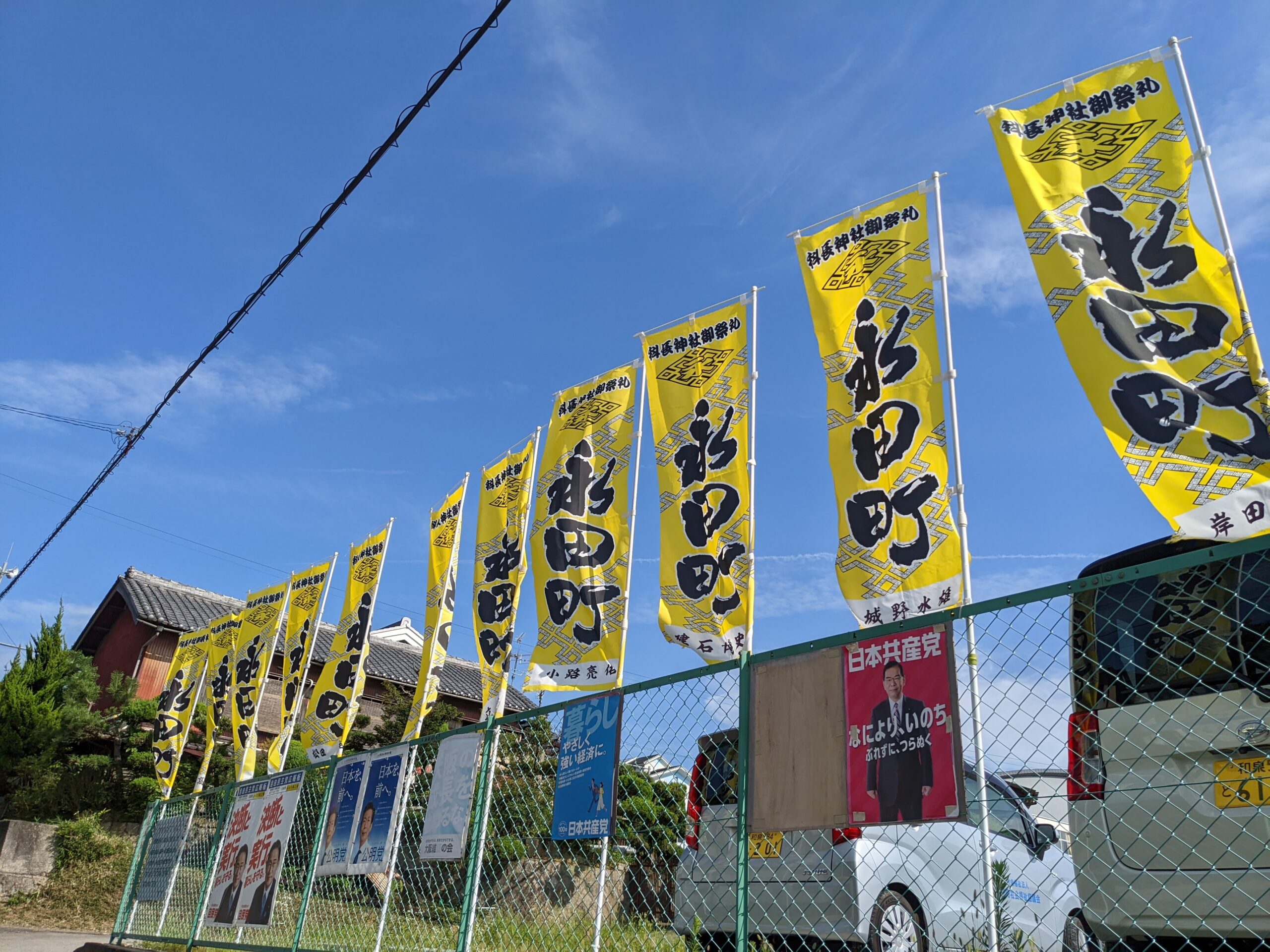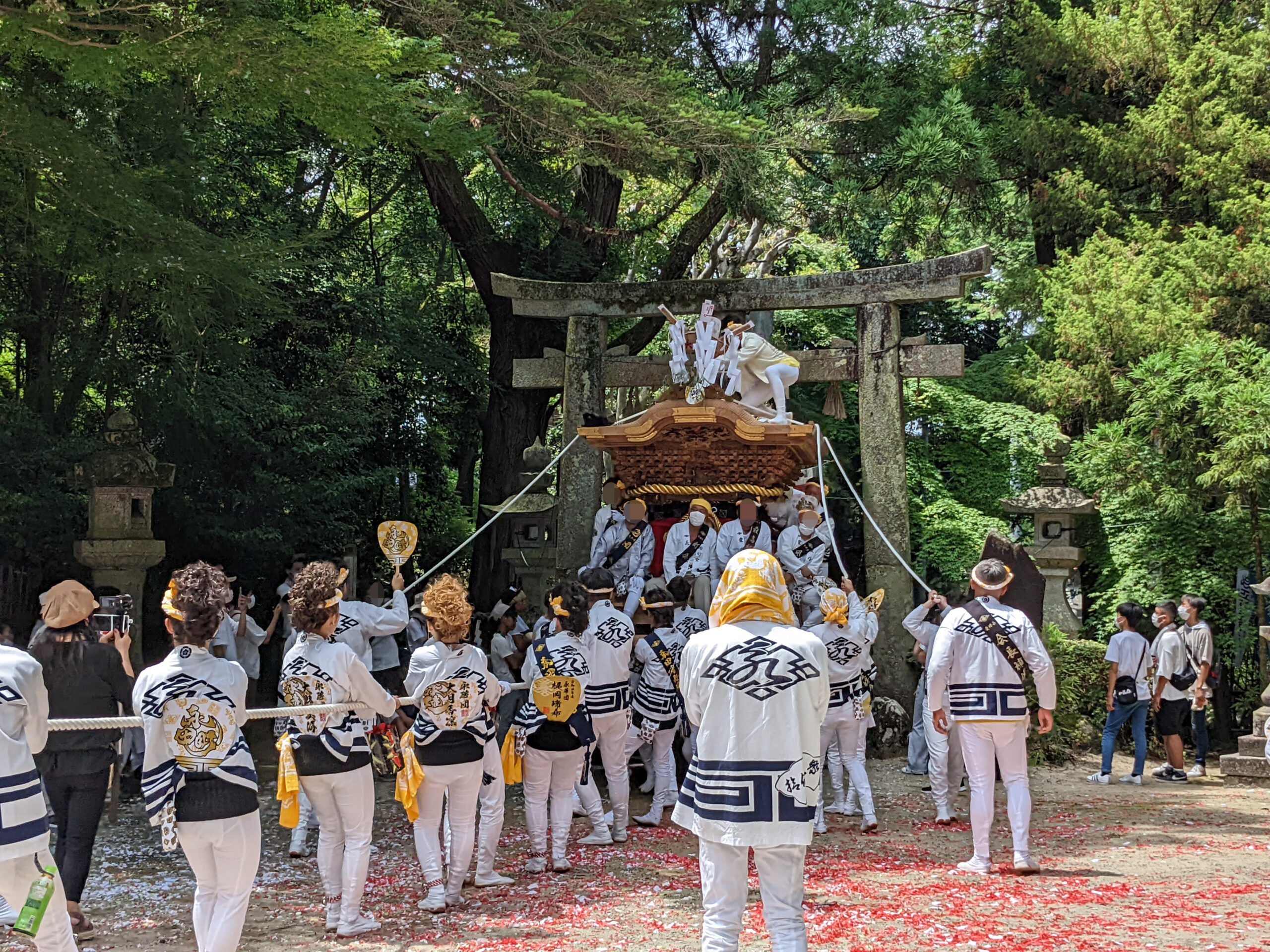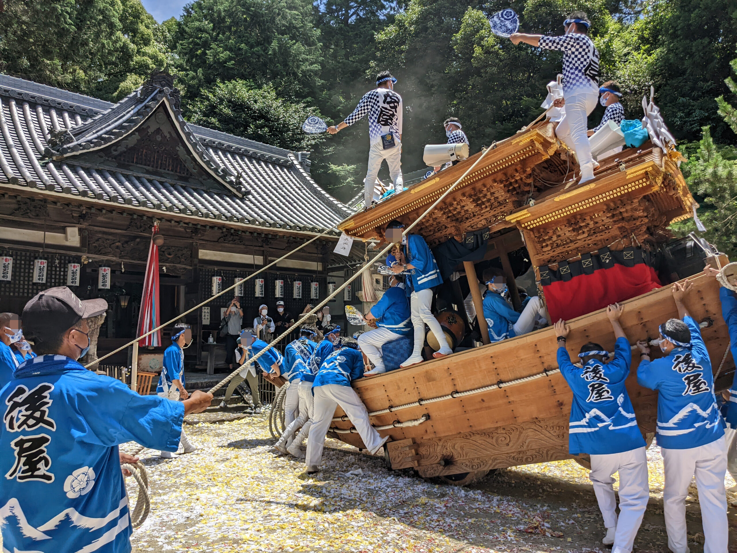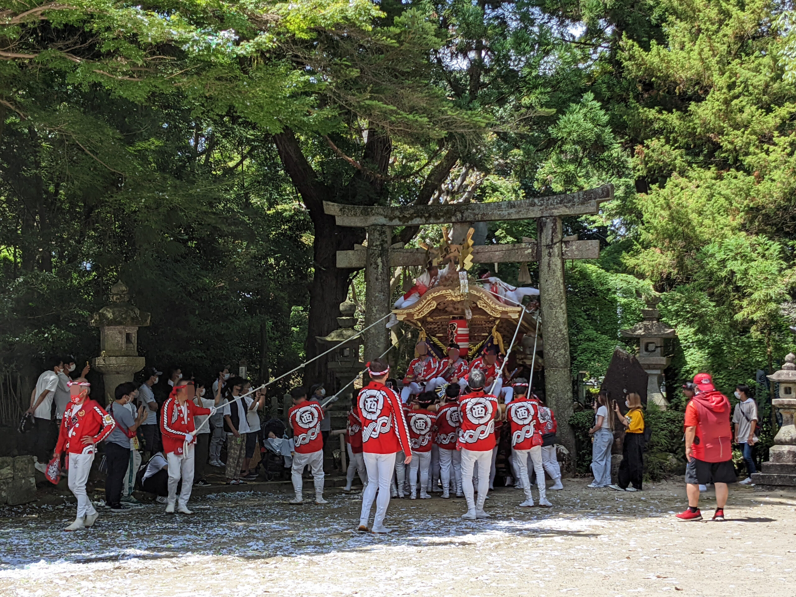 7月23日(土)と24日(日)に3年ぶりとなる科長(しなが)神社の夏祭りが行われ、太子町山田地区のだんじり曳行が復活しました。晴れ渡る青空の中、太子町内ににぎやかな鳴物の音色、威勢のいい掛け声が響き渡ります。